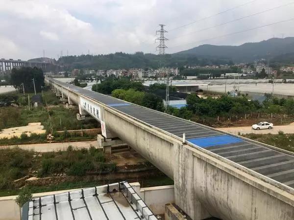 輸水線路工程11個(gè)標(biāo)段于2010年上半年全面開(kāi)工,2013年12月8日,隧洞混凝土澆筑全部完成,倒虹吸壓力鋼管安裝、渡槽混凝土澆筑施工全部完成,具備通水條件。