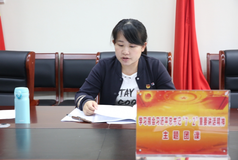 會(huì)上汪婷同志全文領(lǐng)學(xué)了習(xí)近平總書(shū)記“7·2”重要講話(huà),并作導(dǎo)學(xué)報(bào)告,就學(xué)習(xí)領(lǐng)會(huì)好習(xí)近平總書(shū)記“7·2”重要講話(huà)精神提出四點(diǎn)要求:一是將學(xué)習(xí)貫徹習(xí)近平總書(shū)記7·2重要講話(huà)和團(tuán)十八大精神、陳豪書(shū)記在省第十四次團(tuán)代會(huì)上的講話(huà)精神以及省第十四次團(tuán)代會(huì)精神,作為重要任務(wù),抓好專(zhuān)題學(xué)習(xí)、廣泛宣講宣傳,在團(tuán)員青年中掀起學(xué)習(xí)熱潮。二是加強(qiáng)團(tuán)員青年思想政治引領(lǐng)。持續(xù)強(qiáng)化團(tuán)干部學(xué)習(xí)教育,開(kāi)展“青年大學(xué)習(xí)”行動(dòng),教育引導(dǎo)團(tuán)員青年堅(jiān)定正確政治方向,增強(qiáng)“四個(gè)自信”,堅(jiān)定“聽(tīng)黨話(huà)、跟黨走”的人生追求。三是團(tuán)員青年們要在學(xué)習(xí)好習(xí)近平總書(shū)記“7·2”重要講話(huà)精神的基礎(chǔ)上,自覺(jué)把學(xué)習(xí)成果轉(zhuǎn)化為投身公司改革發(fā)展的精神動(dòng)力、轉(zhuǎn)化為落實(shí)省水投公司黨委各項(xiàng)決策部署和總體發(fā)展戰(zhàn)略的生動(dòng)實(shí)踐,充分發(fā)揮青年職工的重要作用。